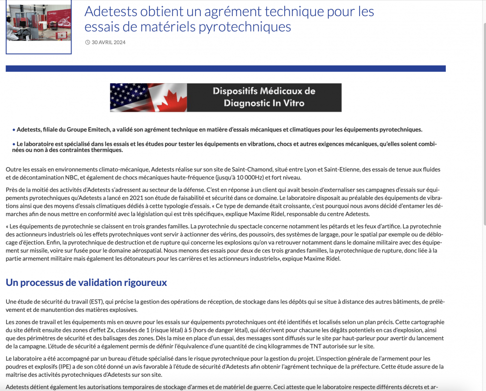 Le Groupe Emitech participe au Aerospace Test & Development Show 2025 et vous accueille sur son stand n° 505, pour discuter de vos besoins en essais (environnementaux, mécaniques, EMC, etc.), et de nos compétences dans les services de qualification.